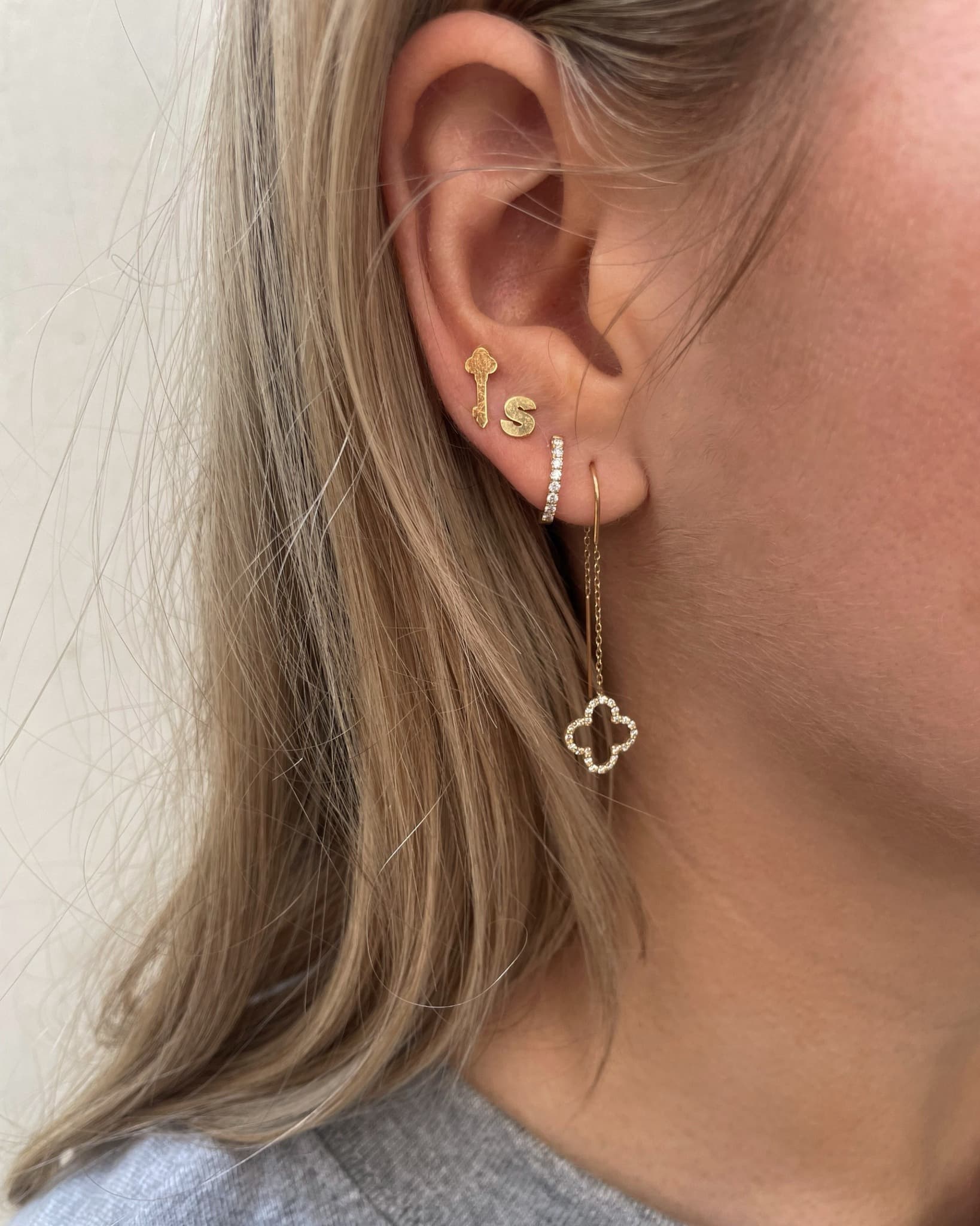 Handcrafted from responsibly sourced 9ct gold, each earring features a graceful chain design adorned, reflecting every movement with soft, natural shimmer.
